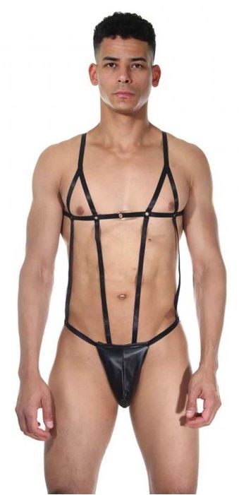 Мужское боди с тонкими ремешками.