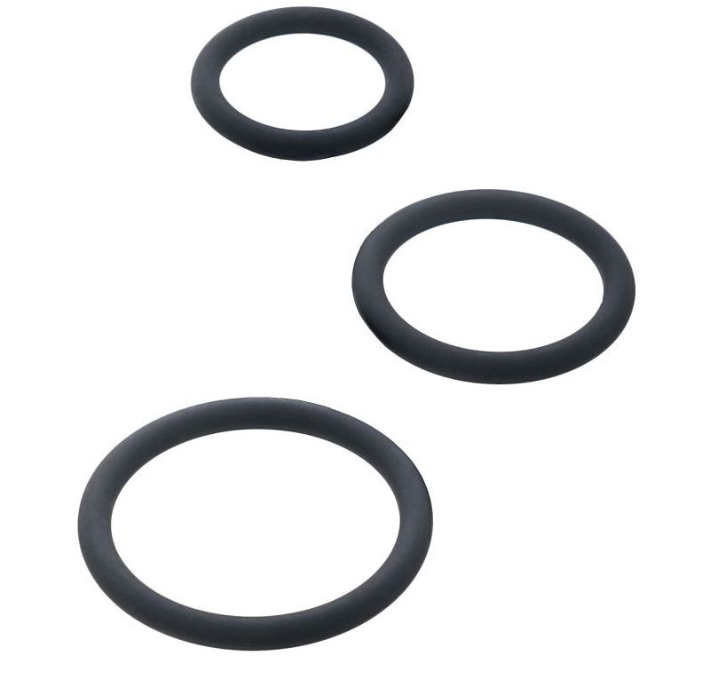 С первого взгляда это набор не таит в себе тайн, но не торопитесь делать выводы! Он безусловно улучшит ваши результаты в любовной игре. Начинающие пользователи могут выбрать свой размер из 3 предложенных и увеличить время своего акта за счет ограничения кровотока. Более продвинутые могут использовать все три кольца, надев их на основание пениса, мошонку и ствол пениса. Диаметр колец - 3,2, 4 и 5 см.