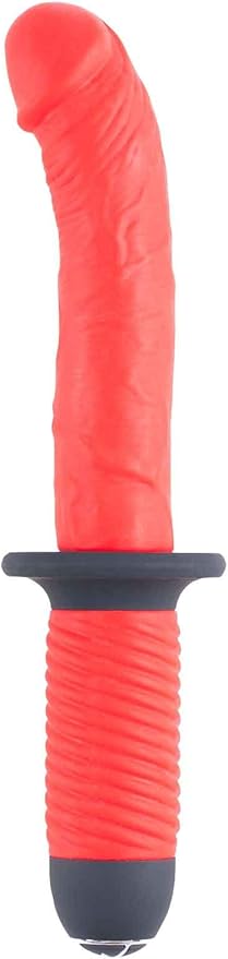 Красный вибратор из силикона - реалистичный фаллос с изогнутой головкой имеет 2 мотора, которые имеют 10 различных режимов работы и 4 скорости интенсивности. Один мотор в головке массажера, другой в основании. Рабочая длина - 17 см.